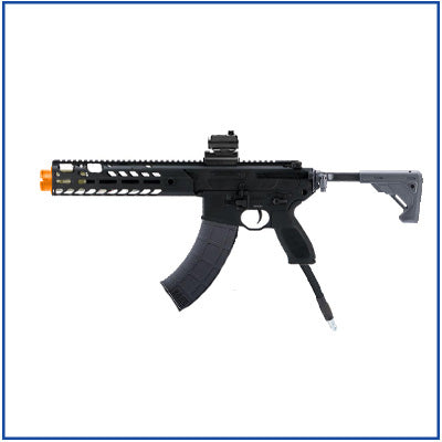 - Adjustable EMG Alpha stock and slimeline polymer pistol grip