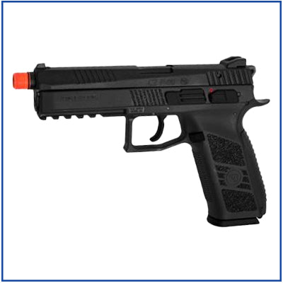 The CZ P-09 is a full-size tactical Airsoft pistol with an integrated rail for mounting light and/or laser. Manufactured under license from CZ, this airsoft pistol is designed from the original technical drawings, resulting in a realistic look and smooth handling. Its blowback function makes the metal slide move with every shot fired, creating strong recoil, adding to the shooting experience.