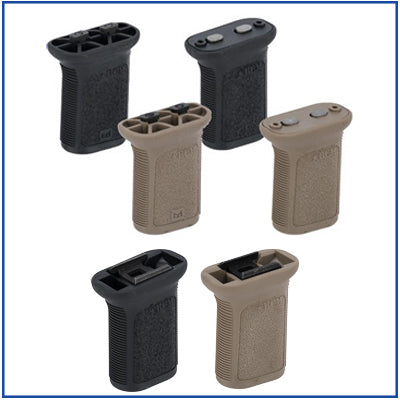 - Can be mounted in reverse angle to increase control when grabbing handguard and grip