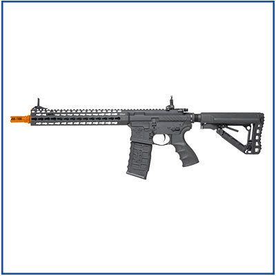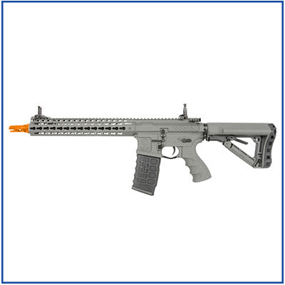 The newest evolution of the G&G Combat Machine line up takes all the standard features that everyone has come to know and respect from the Combat Machine line and improves upon it by offering upgrades and modifications that are never seen at such a low price point, and yet done to such a high level of quality. The CM16 SRXL offers an entirely redesigned polymer receiver, borrowing from the ever popular billet style that has been seen more and more in the firearms world. Other improvements include and ambidextrous magazine release, ambidextrous mock charging handle, metal keymod handguard and a selector switch with a heavy duty detent that gives the user tactile feedback when changing fire modes. While the CM16 SRXL knocks other AEGs in its price range out with its agressive styling, it's whats on the inside that counts most. Installed from the factory is a MOSFET, allowing the user to use LiPo batteries without worrying about damaging the gun and a programmable fire control which allows the shooter to choose either full-auto fire , or three round burst fire modes. Loaded with features and good looks the CM16 SRXL is an excellent choice for any airsofter who is in the market for a gun that has all of the latest features and technology.