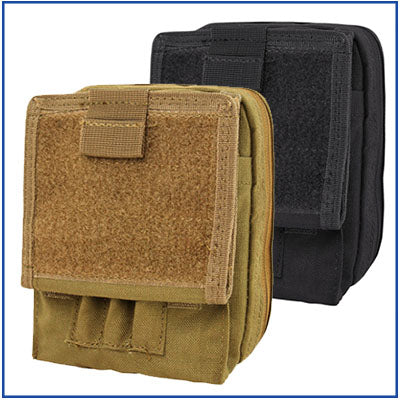 The Condor Map Pouch is versatile admin type pouch. Featuring area for insignia/unit hook and loop patches in front, flip-down ID windows, mulitple slots for pens/markers and a removable vinyl map sleeve within the main compartment. Comes with two MOD Straps.