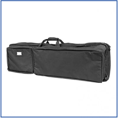 The Larger compartment (27” W X 10½ H) has PAL webbing to secure your shooting accessories or smaller firearms. Two shoulder straps provided; allows you to carry the Double Rifle Case like a backpack.