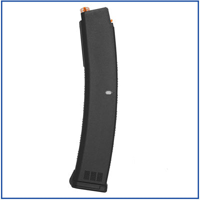The PTS EPM E9 Magazine is a 110-round spring loaded magazine that features a constant-curve internal geometry for reliable feeding and a tough Dupont Zytel polymer outer body that will withstand the toughest field use conditions. Our signature EP pattern has been implemented onto the shell to give the magazine a positive texture for better grip and tactile feel. The marking matrix is incorporated onto left and right hand side of the shell for personalized magazine identification use.