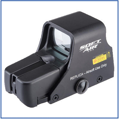 - Large square viewing window for rapid aiming down sights